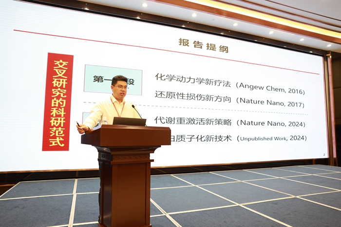 国家杰青、新加坡南洋理工大学终身讲席教授邢本刚教授作题为《用于局部近红外成像和ENTCACs治疗操作的可点击分子工具箱》的主旨报告